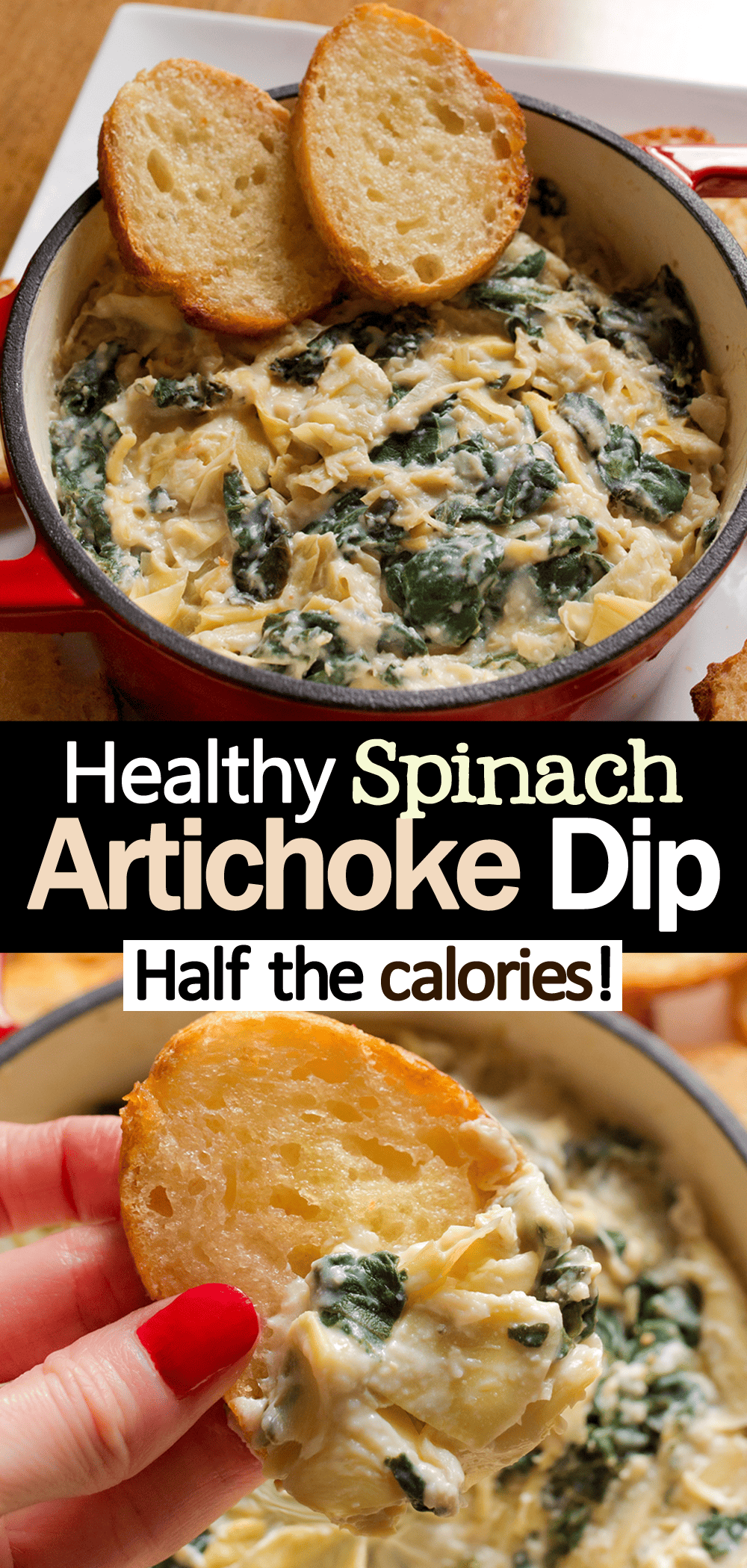 Alta proteína e baixa caloria, esta receita saudável de molho de espinafre e alcachofra não requer maionese ou cream cheese!