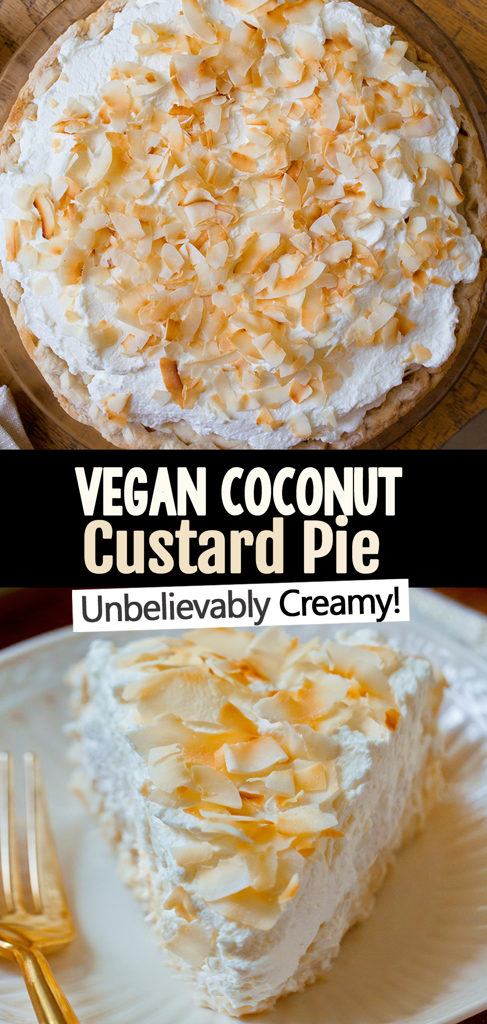 Esta receita vegana de torta de coco é Tão luxuosamente cremoso. Camadas de chantilly de coco e coco tostado no topo mais delicioso recheio de creme de coco!